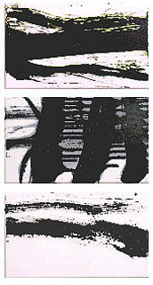 o.T., 3 Bilder, je 24 x 40, Öl und Bitumen auf Leinwand, 2001