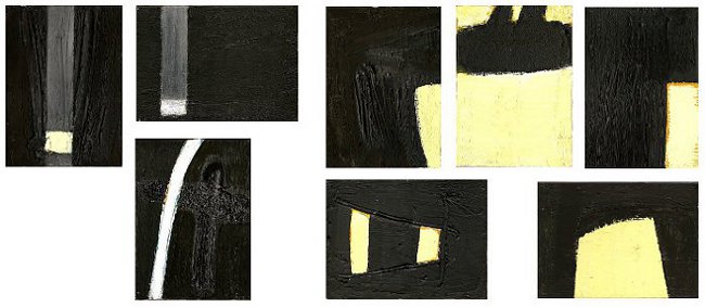 Lumilux Nr.1 bis 8, 18 x 13 bzw. 13 x 18, Öl und Bitumen auf Leinwand, 2001- verkauft