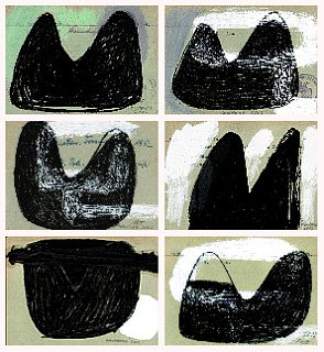 Kleine Formung 1-6, je 10.5 x 14.7, Mischtechnik auf Karteikarte, 2002