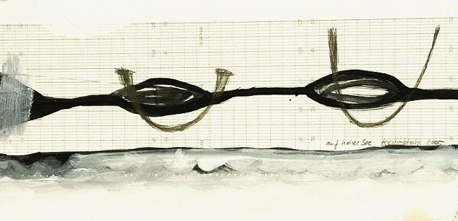 auf hoher See, 14.6 x 31.0, Mischtechnik auf Karton, 2005