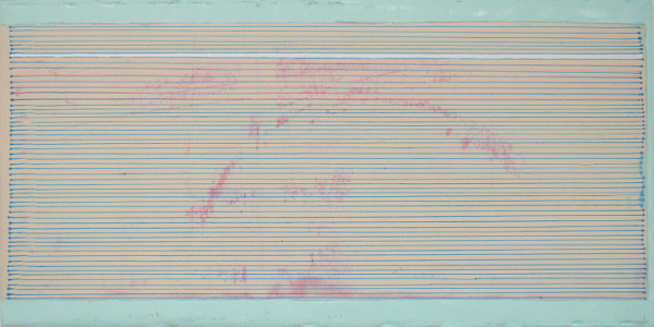 Wenn die Sonne im Meer versinkt", Öl, Copic-Marker auf Leinwand, 50 x 100 cm, 2017