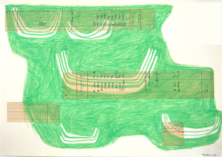 Grüne Lagune, Ölkreide auf Collage, 42 x 59.5 cm, 2019