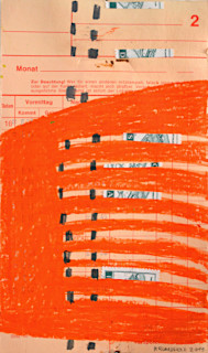 Wellen, Ölkreide auf Collage, 18 x 10.5 cm, 2019