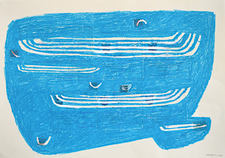 Seefahrerblues, Ölkreide auf Collage, 42 x 59.5 cm, 2019 (verkauft)