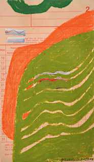 Auf dem grünen Hügel, Ölkreide auf Collage, 18 x 10.5 cm, 2019