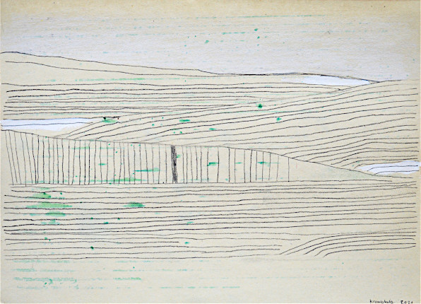 grüne Wiesen, 23,2 x 32,4, Bleistift, Gouache auf Papier, 2021