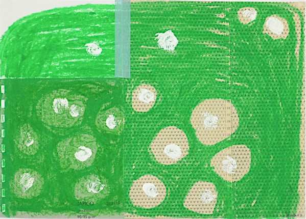 Ammoniten, Ölkreide, Acryl, Collage auf Papier, 21 x 29 cm, 2022