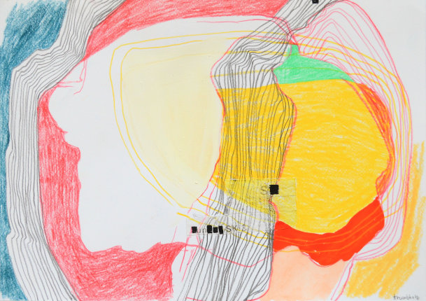 SK3, 29 x 42 cm, Acryl, Gouache, Polychromos, Ölkreide, Collage auf Papier, 2022
